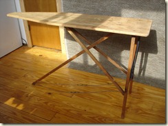 Improvements in ironing boards naturally followed the development of the iron – as irons became lighter, so could ironing boards. This is a 1930s model of pine, which is quite a lightweight timber. Its similar to this one which I picked up at the op=shop a while ago for $5.